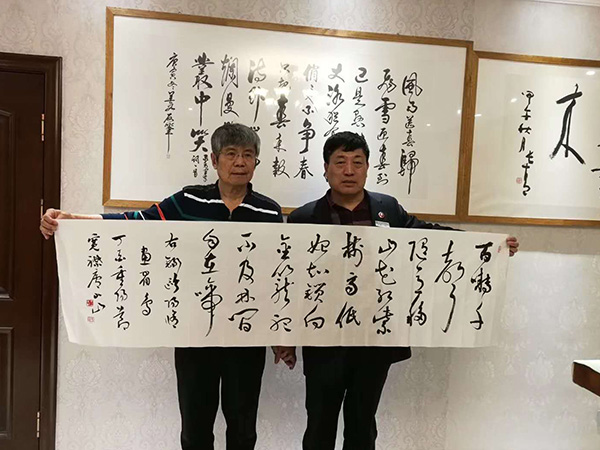 2017年10月28日,时值九九重阳节“威海观澜敬老节”,新疆书法家协会主席于小山莅临威海,挥毫庆祝观澜国际晚年人节日快乐。